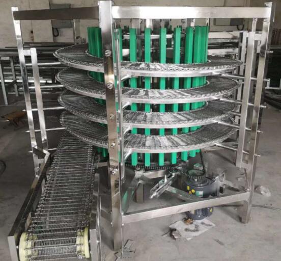 螺旋冷卻塔是一種常用的連續性輸送機械,它是利用工作構件即螺旋體的旋轉運動使物料向前運送,是現代化生產和運輸不可缺少的重要機械設備之一!螺旋冷卻塔的優點:占地面積小,結構簡單、合理。 動力消耗小,料槽磨損小 維修方便 冷卻效率高 ,傳送暢順、雜音少、低能耗、保養簡單、快速、安全。螺旋冷卻塔應用范圍:適用于冷卻漢堡,法式小面包,毛毛蟲,面包等產量較大,冷卻時間較長的品種,采用不銹鋼螺旋式冷卻輸送帶,PLC智能控制。在功能不變,結構的變化帶來成本的變化,最終帶來了利潤的變化,使中小型食品廠買的起,用的起。螺旋冷卻塔選用不銹鋼螺旋網帶載體,網帶寬度300-900mm,層間距及層數依產量定制,冷卻時間20-120分鐘.冷卻產量大,可直接冷卻漢堡,吐司,甜面包,也可帶盤冷卻月餅,奶香包等.定制靈活,依據場地和產能設計直徑和網帶.單塔為上進下出或下進上出.雙塔為下進下出.我廠可根據用戶的產量身訂做,打造經濟實惠的非標螺旋冷卻塔,可大大提高生產效率。
